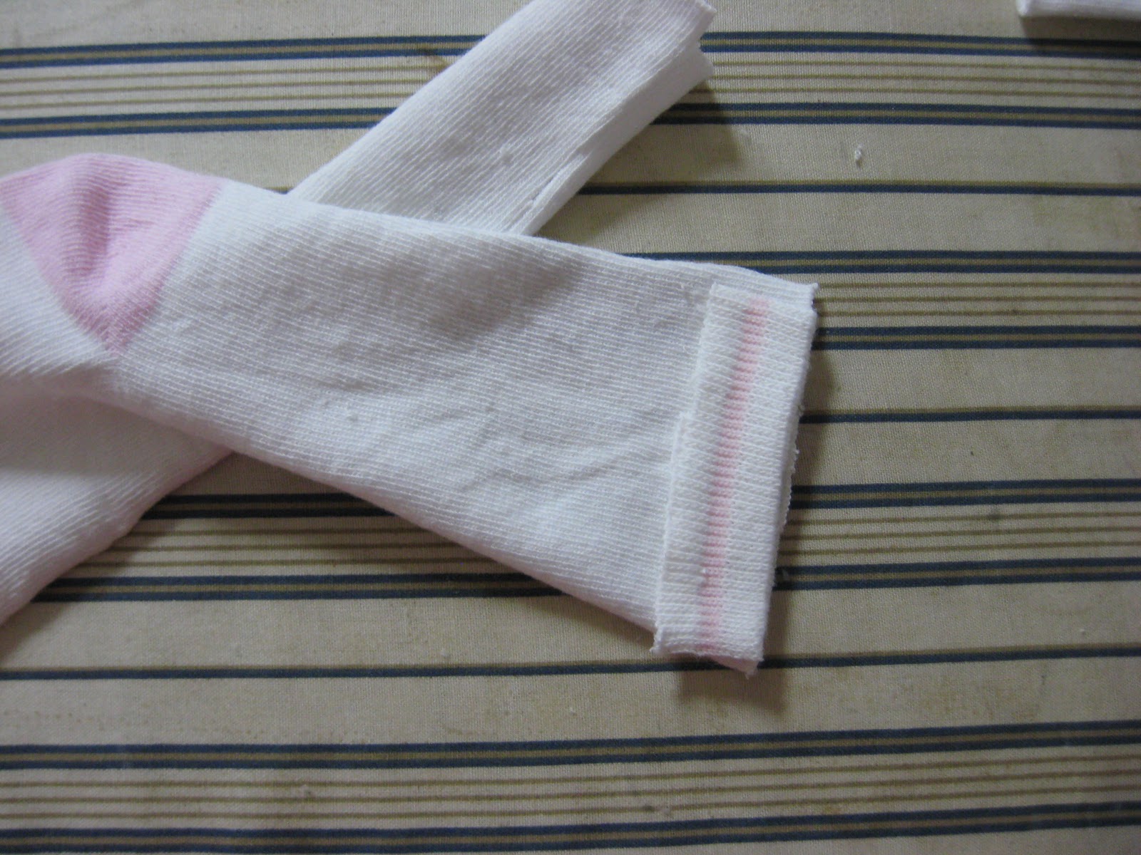 Lay sock flat with heel facing up, cut down center about 1" from heel.