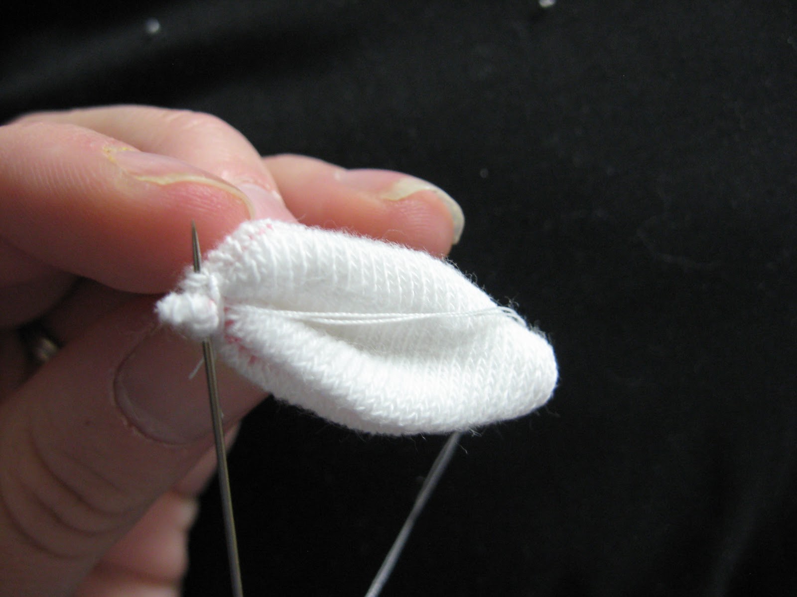 Time to assemble!!Stuff and sew opening closed of sock 1.