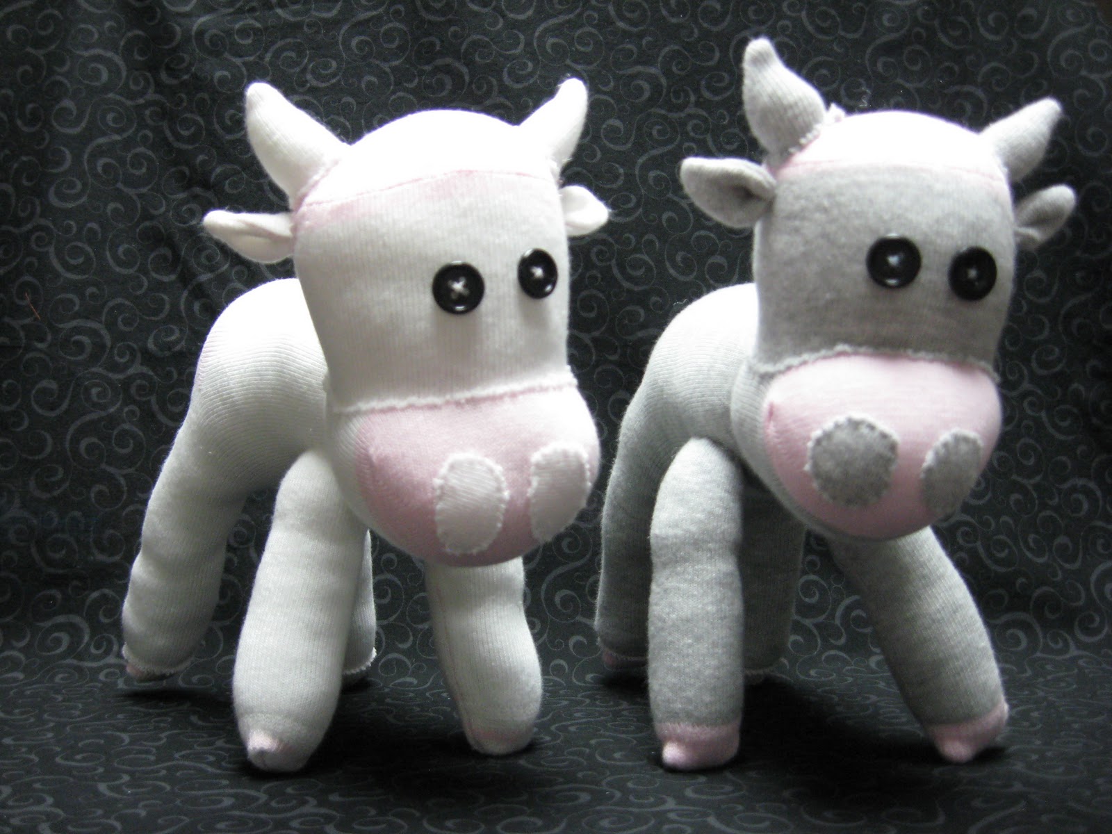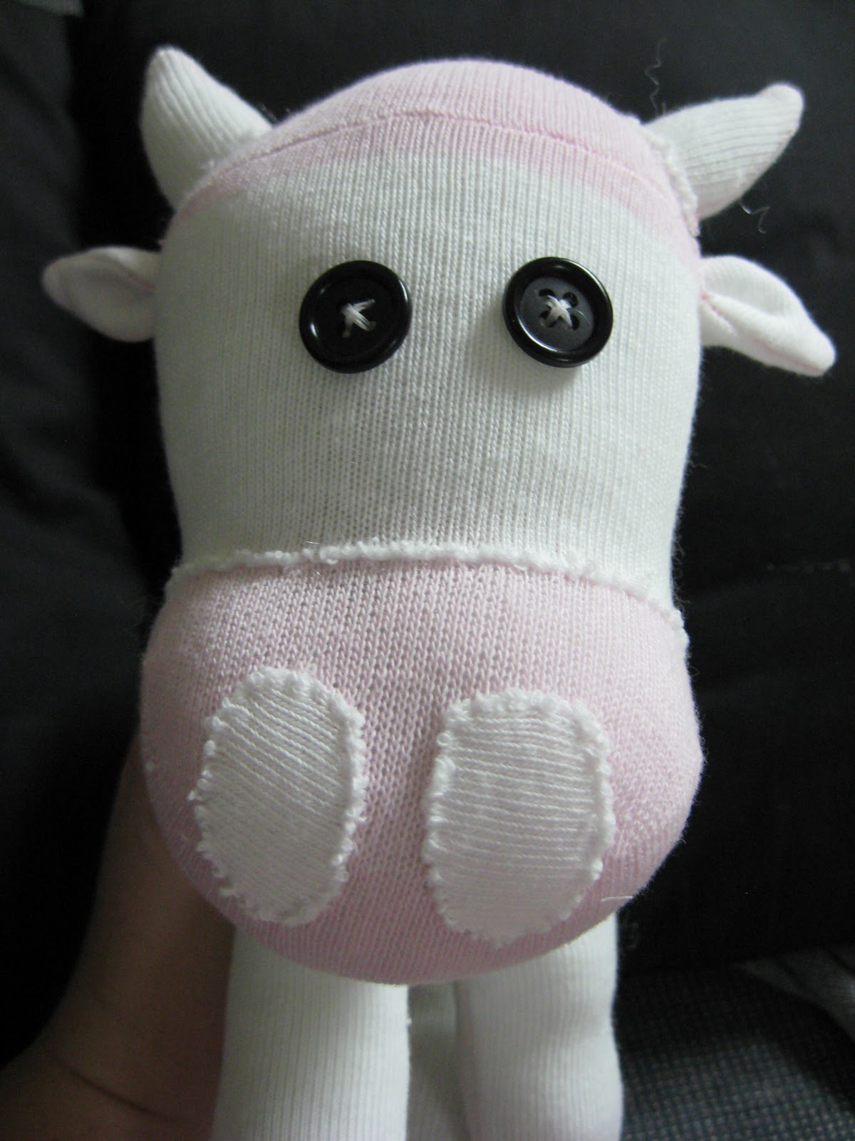 Back when I posted my sock monkey tutorial, I was asked if I knew how to make a sock cow.